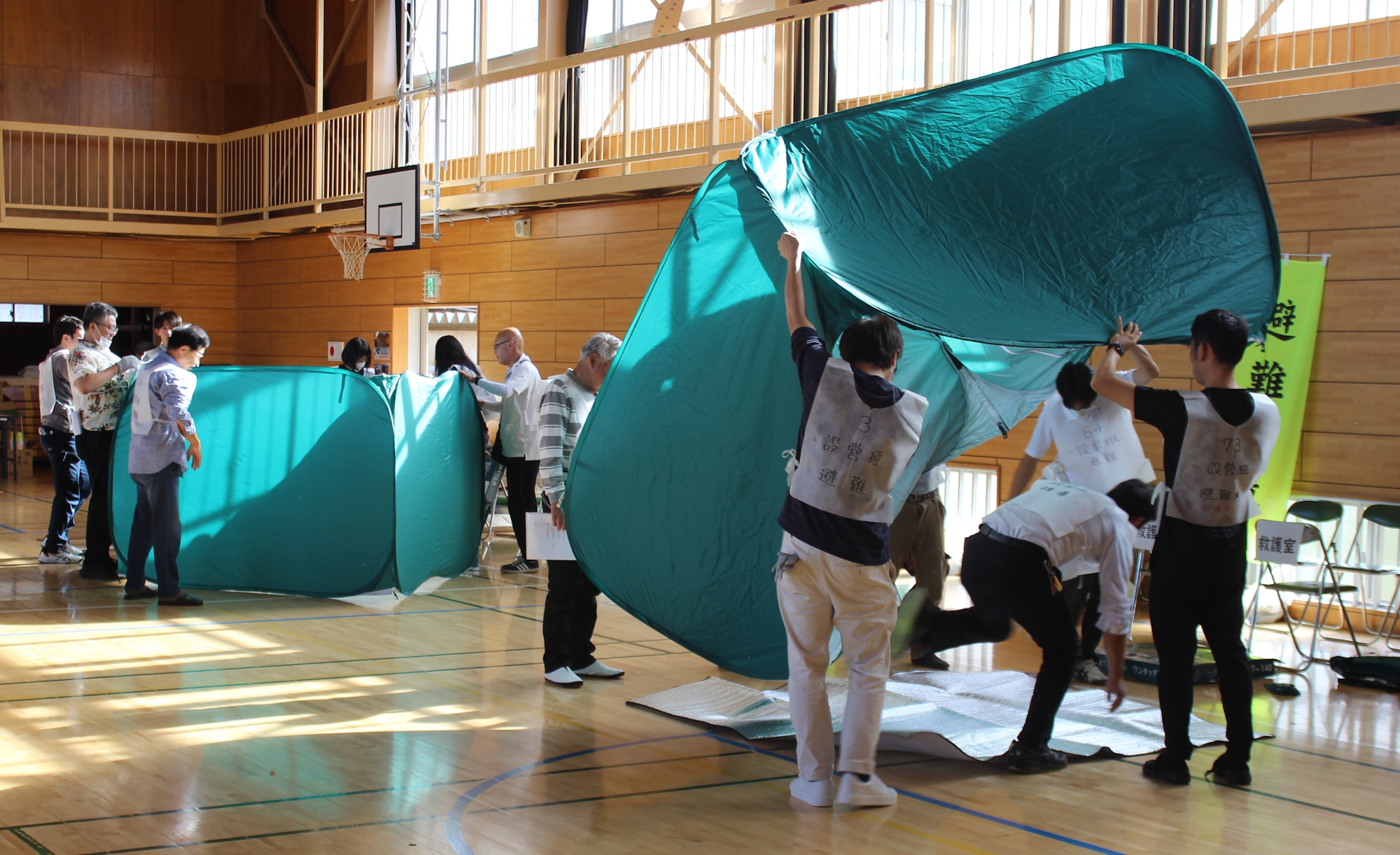 「簡易間仕切りやトイレの組み立て訓練」などを体験しました。
