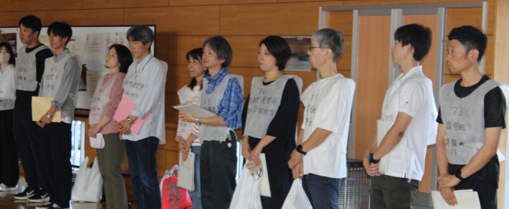 ・ビブスには、事前登録番号と自分の担当が書かれており、着用して訓練に臨んでいただきました。