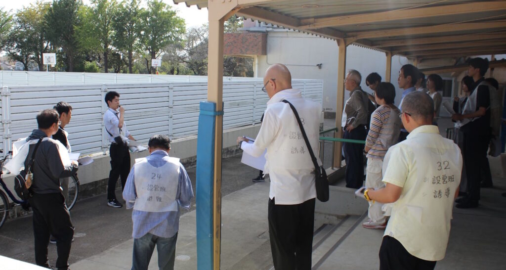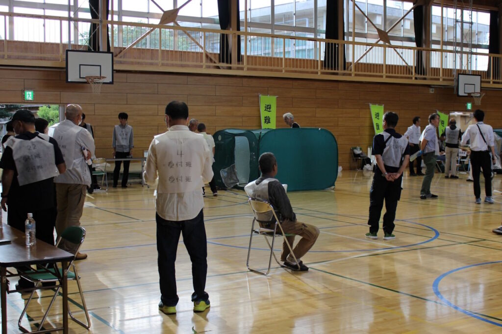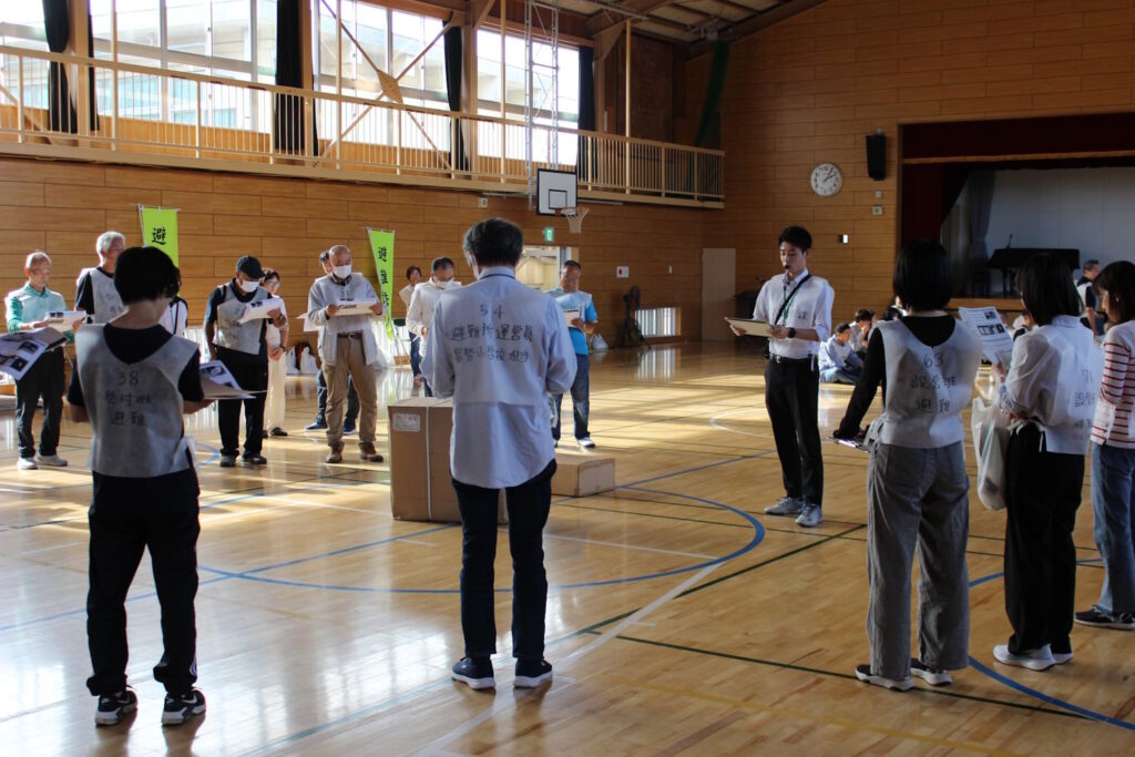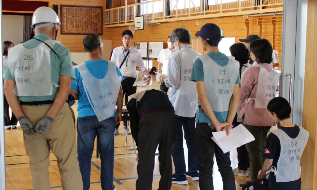 誘導担当は受付前の対応や、受付後の避難者への対応を体験しました。