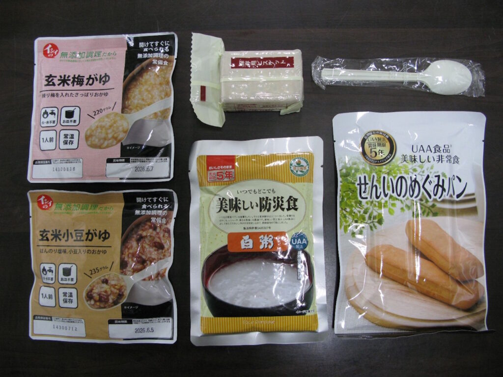 ・備蓄食料は写真をご覧ください。