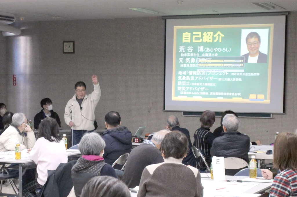今回のテーマは、近年日本各地で起こっている地震について、元気象庁・気象防災アドバイザー・防災士・防災コミュニケーターの荒谷博氏を講師にお招きし、