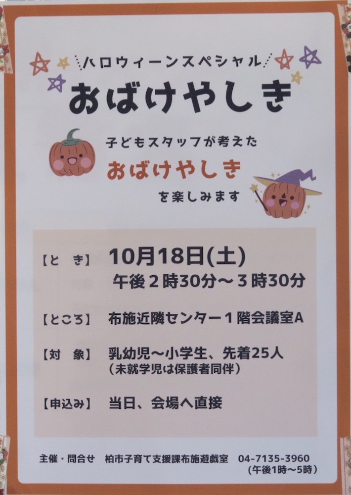 10月18日(土)に布施近隣センター会議室で、小学生のスタッフや中学生のボランティアが考えた、おばけやしきを楽しんでもらいました。