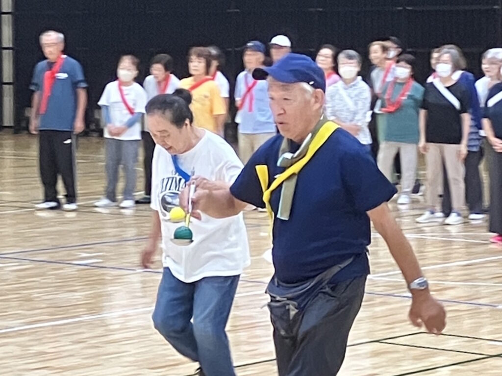 玉入れをする姿は、日頃膝や腰が痛いと言っているシニアとは思えないほど機敏に玉を拾い、かごに投げ入れるを繰り返した結果、見事優勝することが出来ました。
